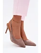 Dámské sandály na podpatku jsou elegantní a nadčasovou volbou pro ženy, které ocení styl a třídu. Jejich štíhlý tvar krásně zvýrazňuje siluetu, dodávající lehkost a ženský charakter každému outfitu. Špičaté špičky dodávají celku vytříbený vzhled a měkká kožená vložka zajišťuje pohodlí i při delším nošení. Tento model spojuje eleganci s pohodlím. Ideální na různé příležitosti – od večerních výletů a večeří, po svatby či pracovní schůzky, kdy chcete vypadat stylově a profesionálně. Při výběru velikosti se řiďte tabulkou velikostí.