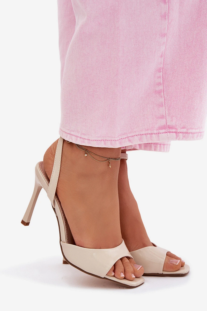 Dámské sandály na podpatku z umělé kůže béžové Olissey