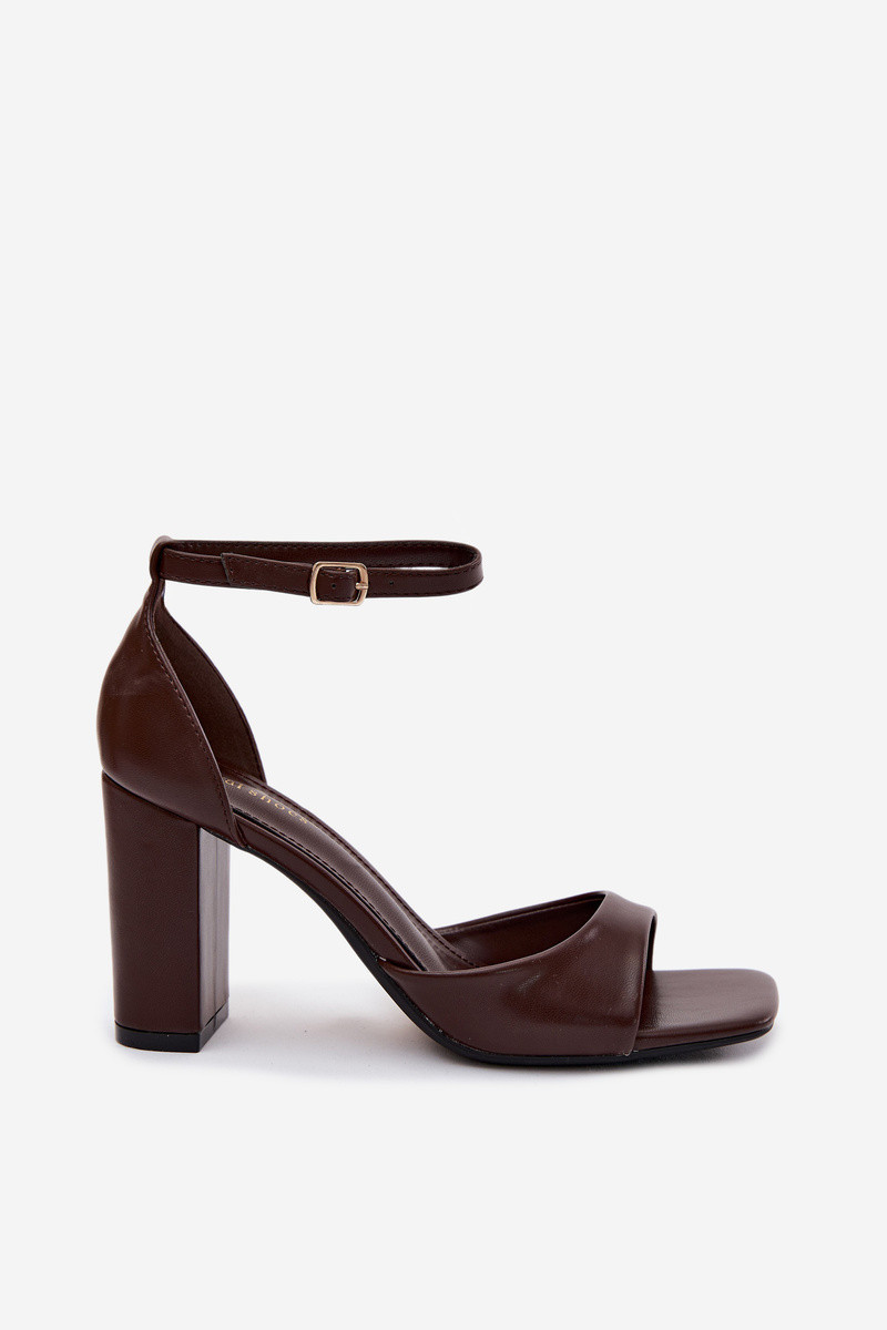 Dámské sandály na podpatku z umělé kůže čokoládové Melvra