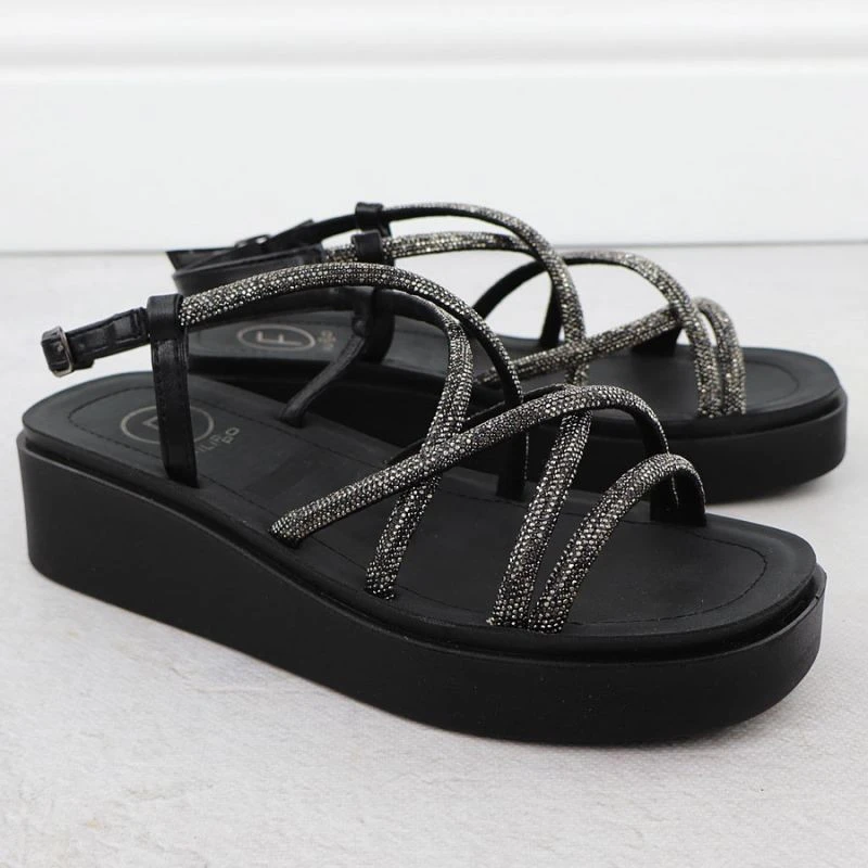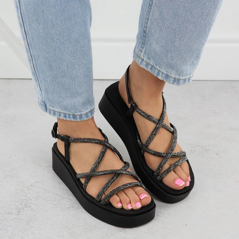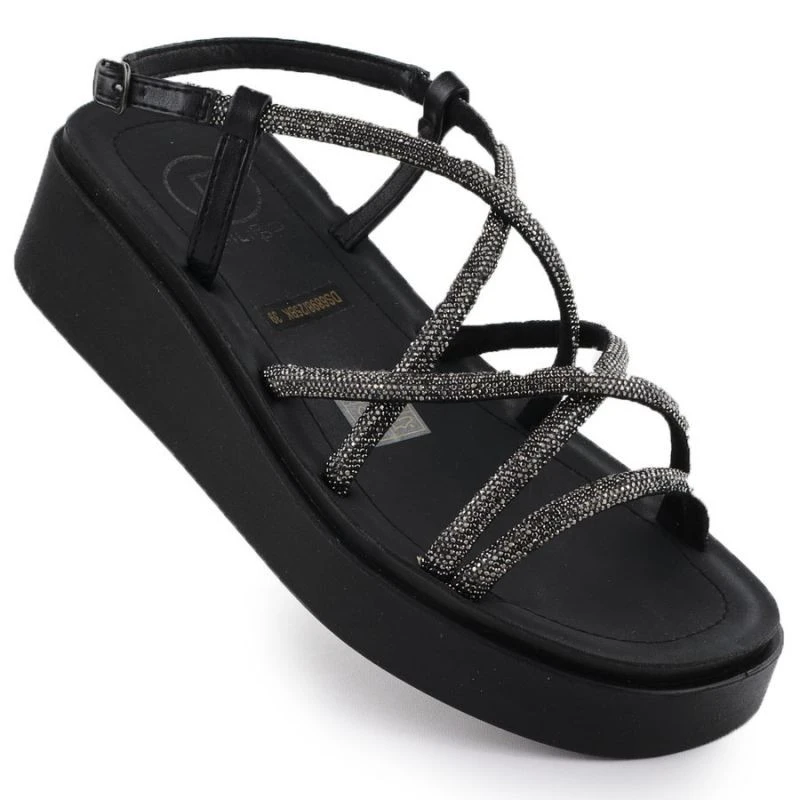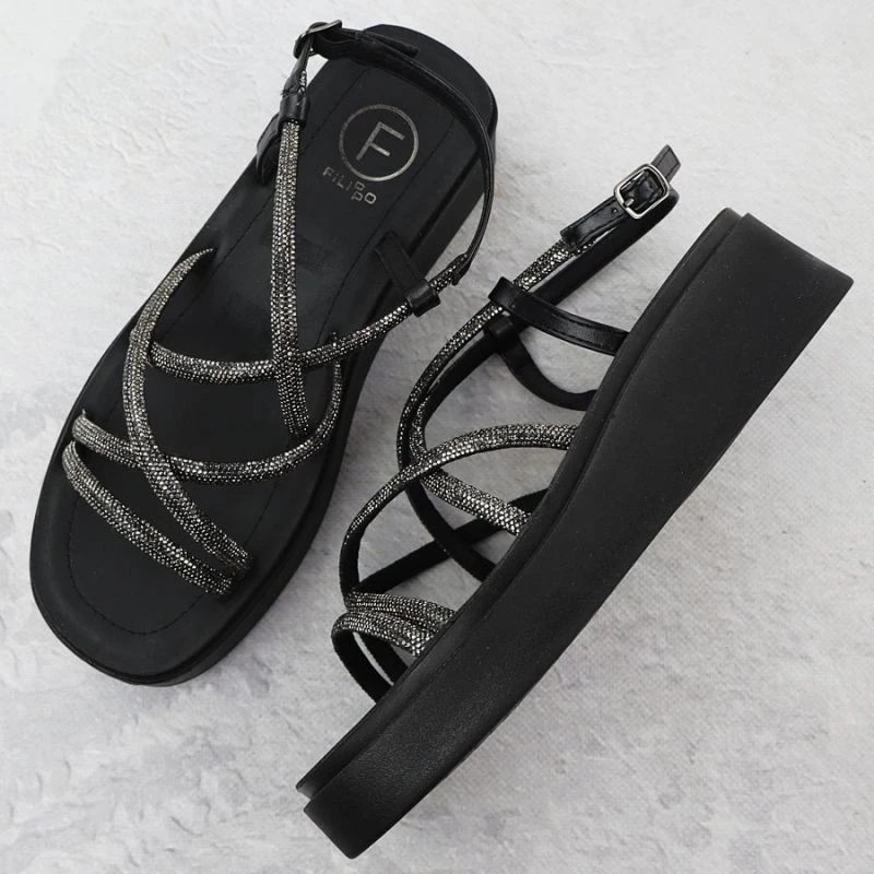 Dámské sandály na se zirkony černé model 21905027 - FILIPPO