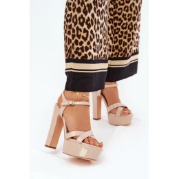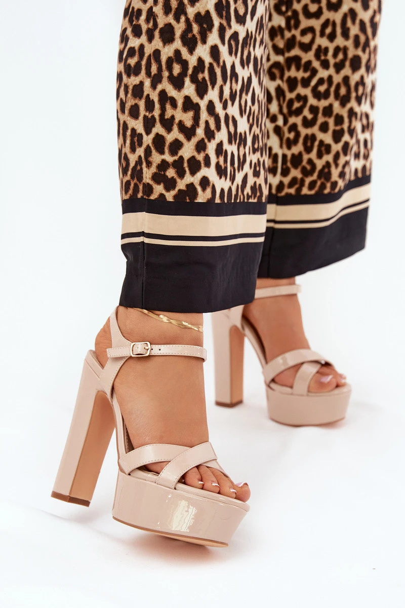 Dámské sandály na vysokém podpatku a platformě lakované béžové model 21688893 - Boto