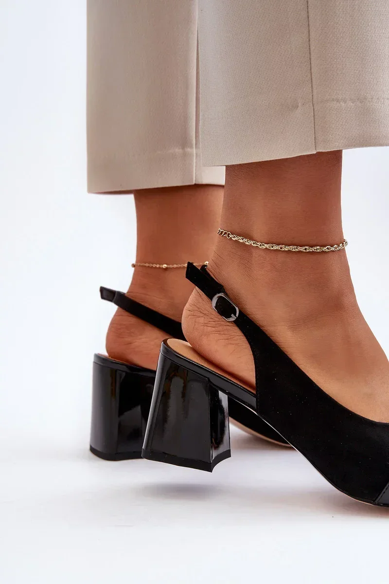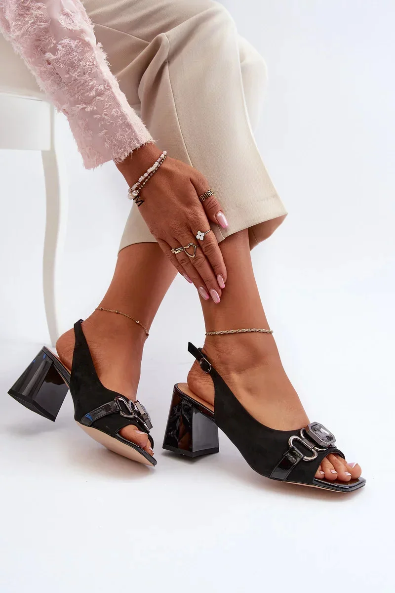Sandály na vysokém podpatku jsou nejen pohodlné, ale také elegantní. Vyrobené z eko semiše, zdobené na přední straně, vypadají mimořádně efektně. Stélka z přírodní kůže poskytuje další pohodlí. Zapínají se pomocí nastavitelného popruhu s přezkou, jsou praktické a snadno se upravují. Tento model by rozhodně neměl chybět ve vaší sbírce obuvi! Při výběru velikosti se řiďte tabulkou velikostí.