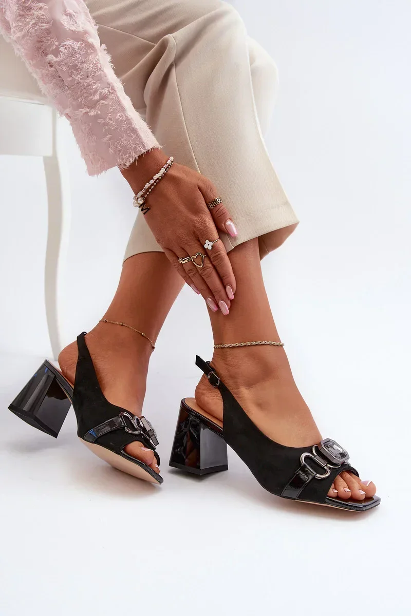 Přidání recenze k Dámské sandály na vysokém podpatku s ozdobou, černé D&A