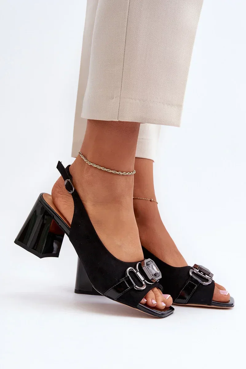 Dámské sandály na vysokém podpatku s ozdobou, černé D&A