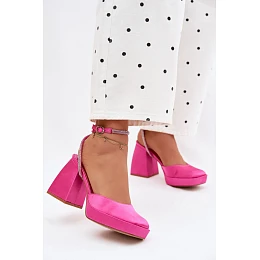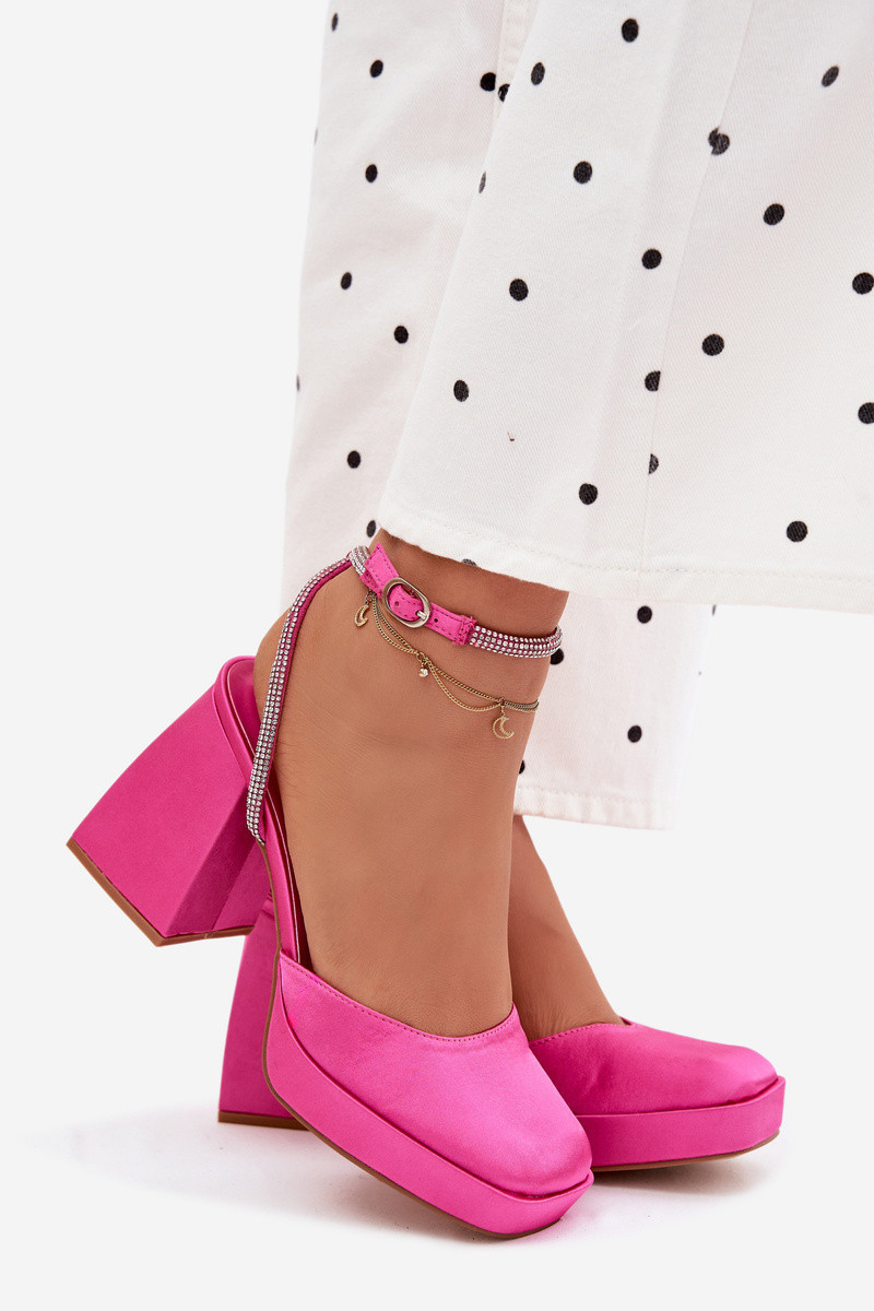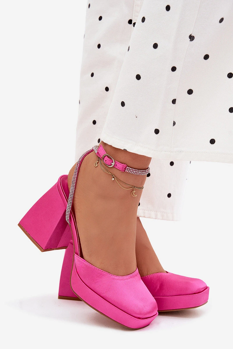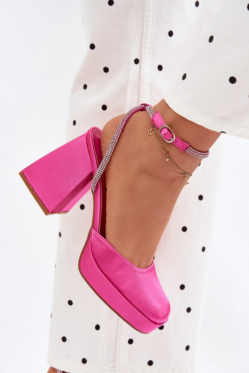Dámské sandály na vysokém podpatku typu sloupek s páskem s krystaly fuchsiová Seraphina