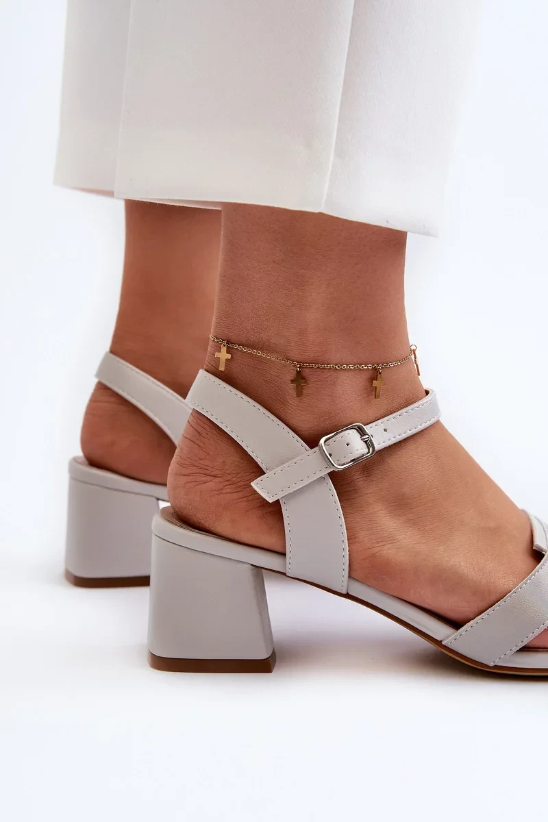 Stylové sandály z eko kůže jsou spolehlivou volbou pro letní dny! Díky nastavitelnému popruhu s přezkou je snadno přizpůsobíte noze. Nízký blokový podpatek dodává eleganci a stabilitu, díky čemuž jsou ideální pro mnoho příležitostí. Stélka z přírodní kůže zajišťuje maximální pohodlí při nošení. Při výběru velikosti se řiďte tabulkou velikostí.