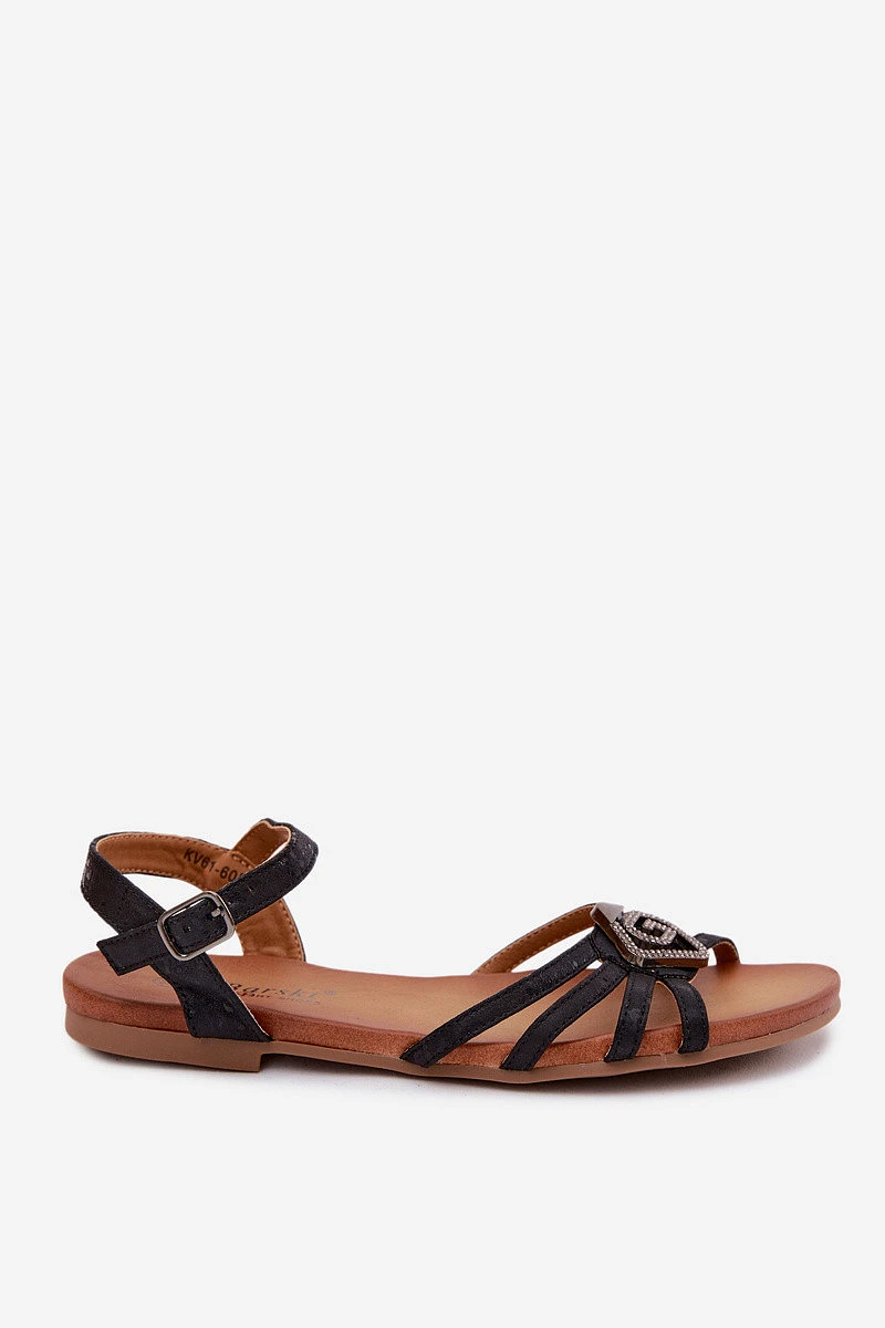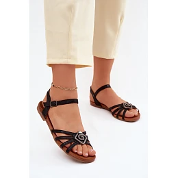Dámské sandály Ploché s pásky a ozdobou model 22133718 Černé - S.Barski