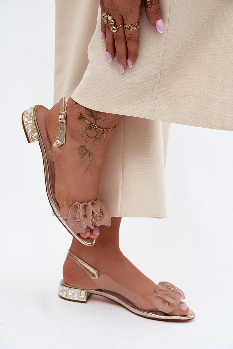 Dámské sandály průhledné s krystaly Zlaté D&A MR61-9002