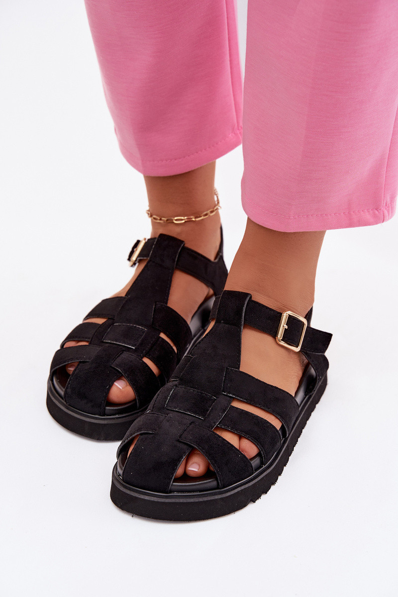 Dámské sandály inspirované stylem římských sandálů představují spojení letní lehkosti a pohodlí. Vyrobené z eko semiše vypadají stylově a elegantně, a platforma zajišťuje komfort a jistotu při chůzi. Nastavitelný pásek s zlatou přezkou umožňuje přizpůsobení obuvi noze. Ideální volba pro každodenní letní outfity, které kombinují módní vzhled s funkčností. Při výběru velikosti se řiďte tabulkou velikostí.