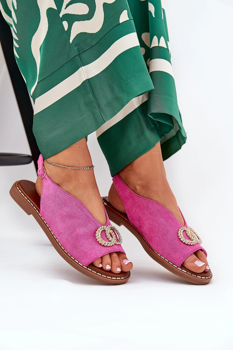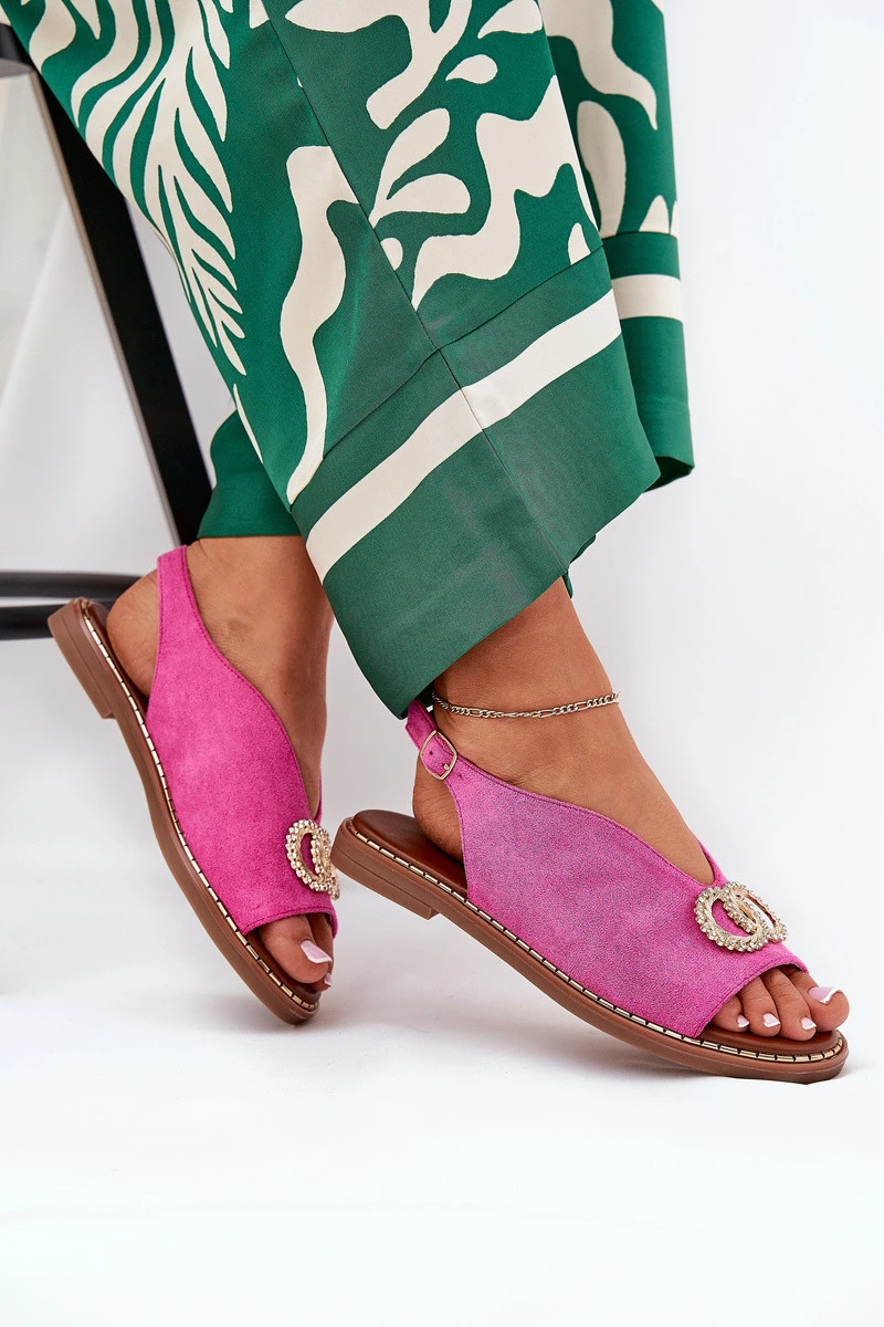 Dámské Sandály S Dekorací Na Plochém Podpatku Eko Sametové Růžové model 21685735 - Boto