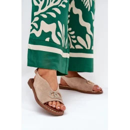 Dámské Sandály S Dekorací Na Plochém Podpatku Eko Semišové Béžové model 21685721 - Boto