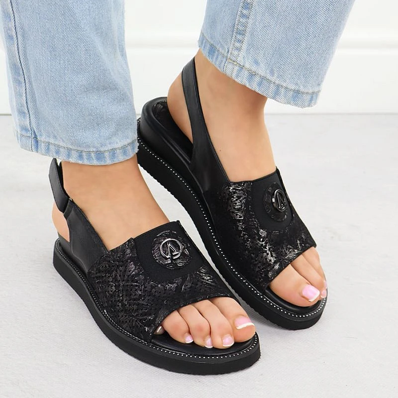 Dámské sandály s gumou černé model 22051713 - JEZZI
