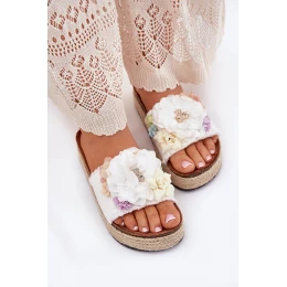 Dámské sandály s květinami platforma s pletením bílé Zenvanis