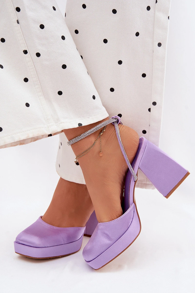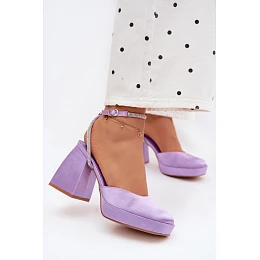 Dámské sandály s masivním podpatkem typu sloupek s páskem a kamínky Fialové Seraphina