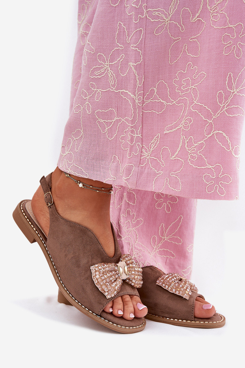 Dámské sandály od značky S.Barski. Vyrobené z eko semiše. Ploché podpatky zajišťují pohodlí a stabilitu po celý den, zatímco ozdobná mašle vepředu dodává jemné kouzlo. Kožená stélka zaručuje pohodlí a pečuje o komfort nohou po celý den. Zapínání na přezku s nastavitelným páskem umožňuje dokonalé přizpůsobení noze. Tento model rozhodně dodá eleganci vašim letním outfitům. Při výběru velikosti se řiďte tabulkou velikostí.