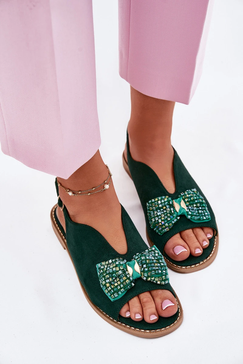 Přidání recenze k Dámské Sandály S Mašlí Na Plochém Podpatku S.Barski KV51-014 Zelené