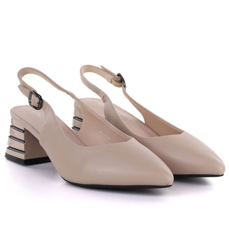 Dámské sandály s ozdobným podpatkem béžové Vinceza 26-62285
