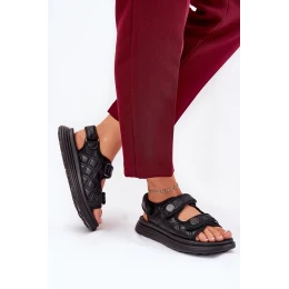 Dámské sandály s ozdobnými detaily na suchý zip černé model 21687995 - Boto