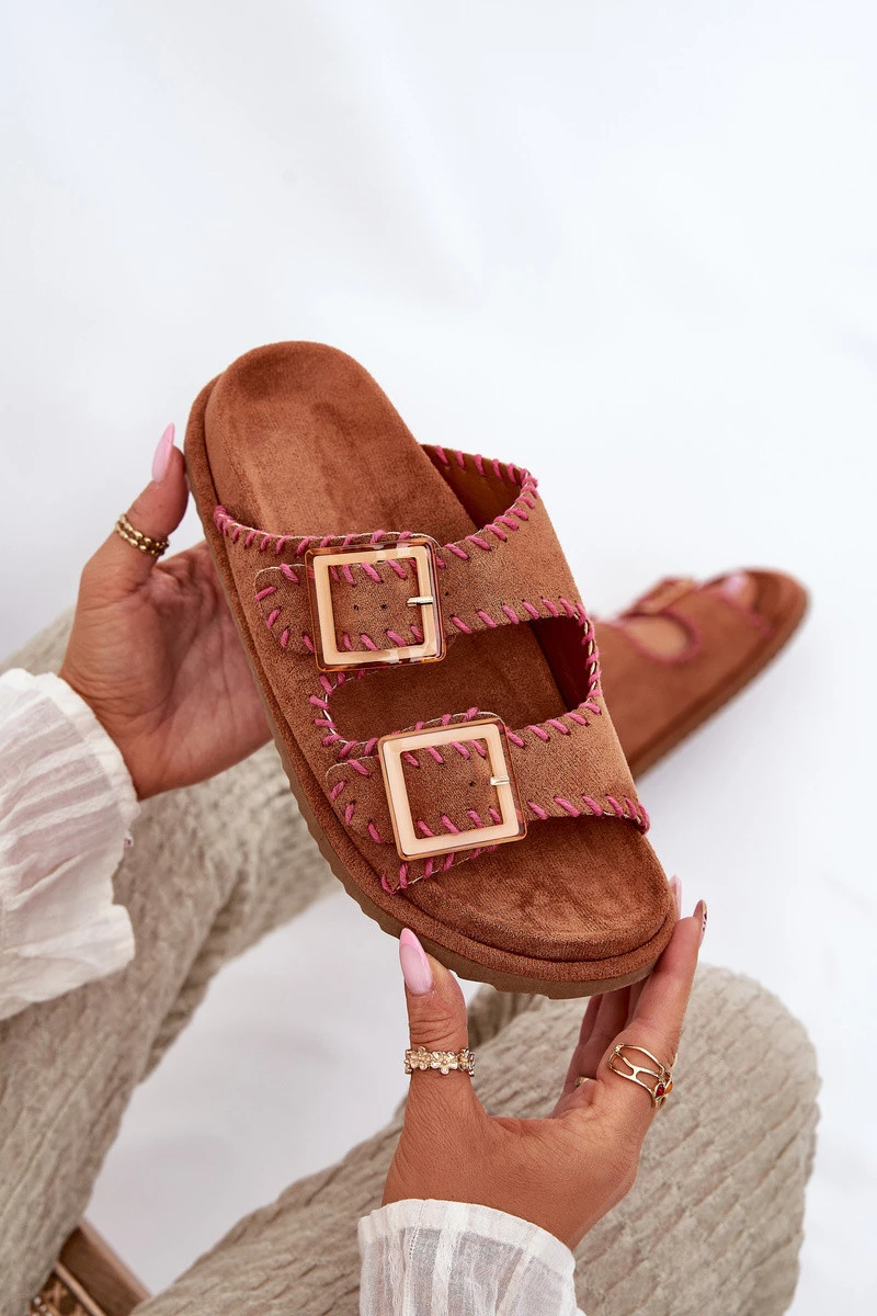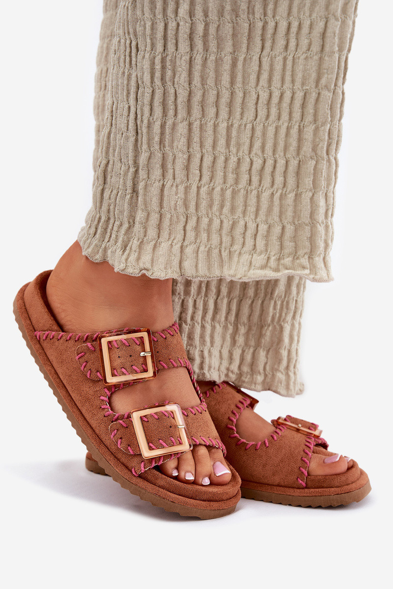 Dámské Sandały S Přezkami A Dekorativním Švem Hnědé Visley