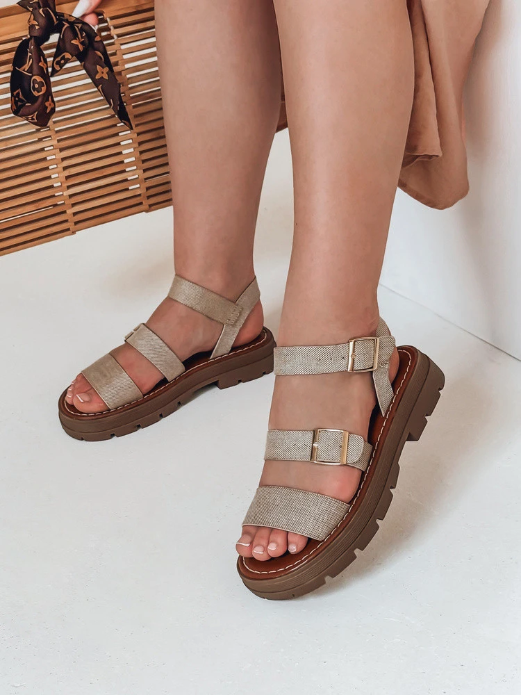 Dámské sandály s přezkami SOLARIA beige FashionStreet ZY0888