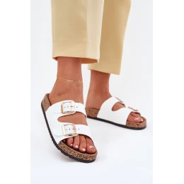 Dámské sandály s přezkami z ekologické kůže bílé model 21701643 - EVENTO