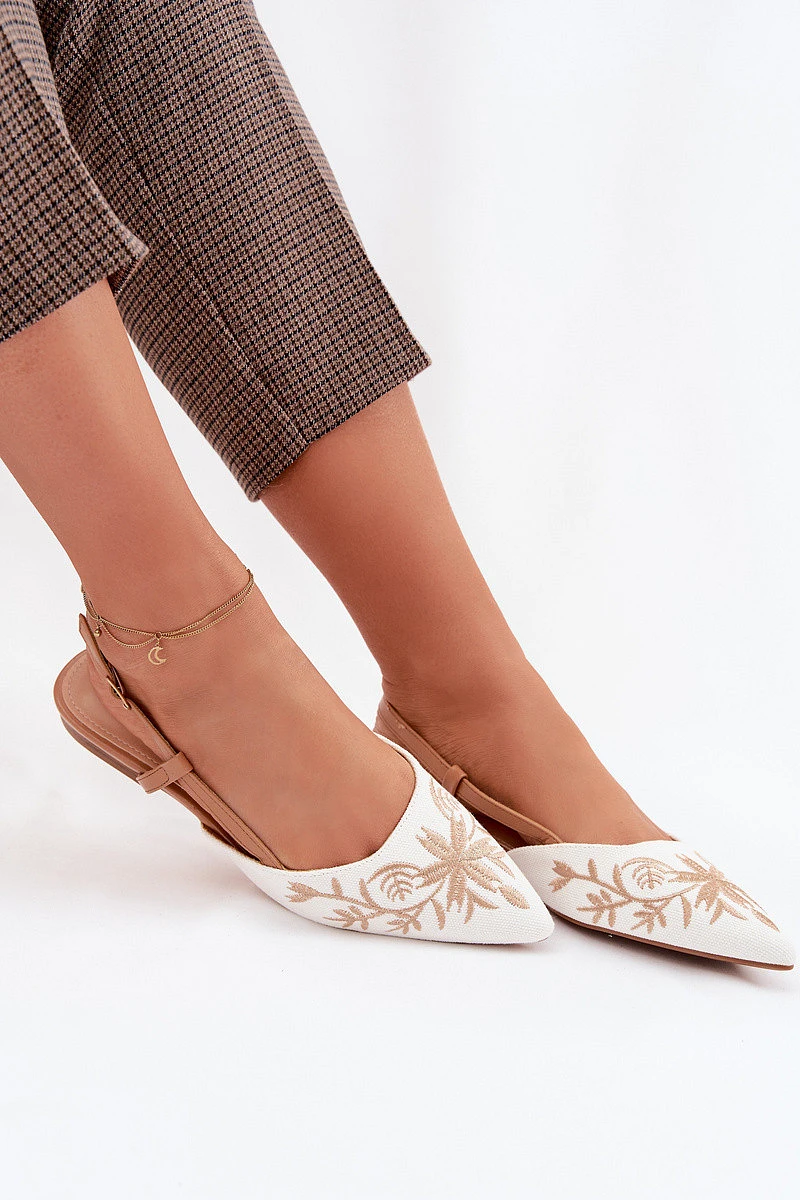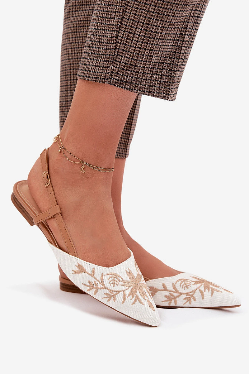 Dámské sandály s elegantním charakterem jsou ideální volbou na různé příležitosti. Uzavřená, špičatá špička zdůrazňuje štíhlou linii nohy a dodává modelu jemnou eleganci. Plochý podpatek zajišťuje pohodlí při chůzi a měkká vložka zvyšuje komfort po celý den. Vyšívaný detail vpředu tvoří nápadnou ozdobu, která přitahuje pozornost a podtrhuje výjimečný styl sandálů. Zapínání na přezku s nastavitelným páskem umožňuje přizpůsobení noze, zajišťuje stabilitu a pohodlí. Tyto stylové sandály dokonale doplní elegantní outfity na speciální příležitosti. Při výběru velikosti se řiďte tabulkou velikostí.