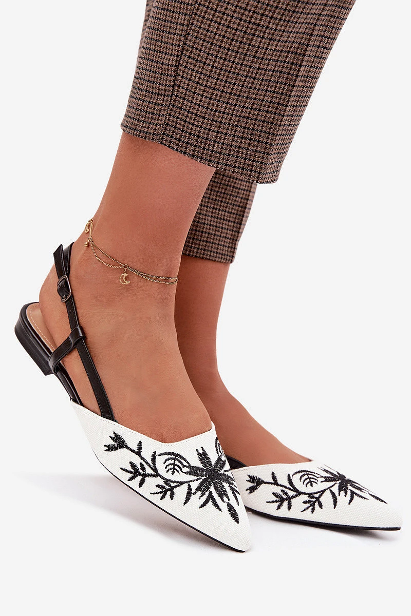 Dámské sandály s elegantním charakterem jsou ideální volbou na různé příležitosti. Uzavřená, špičatá špička zdůrazňuje štíhlou linii nohy a dodává modelu jemnou eleganci. Plochý podpatek zajišťuje pohodlí při chůzi a měkká vložka zvyšuje komfort po celý den. Vyšívaný detail vpředu tvoří nápadnou ozdobu, která přitahuje pozornost a podtrhuje výjimečný styl sandálů. Zapínání na přezku s nastavitelným páskem umožňuje přizpůsobení noze, zajišťuje stabilitu a pohodlí. Tyto stylové sandály dokonale doplní elegantní outfity na speciální příležitosti. Při výběru velikosti se řiďte tabulkou velikostí.
