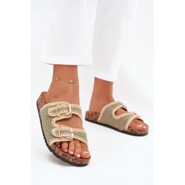 Dámské háčkované pantofle na korkové platformě jsou výjimečným návrhem na teplé dny. Díky profilované stélce z eko semiše zajišťují komfort a pohodlí po celý den. Dvě zlaté přezky jim dodávají elegantní charakter. Ideální pro letní stylizace, tyto pantofle budou skvělou volbou k šatům, sukním a kalhotám. Při výběru velikosti se řiďte tabulkou velikostí.