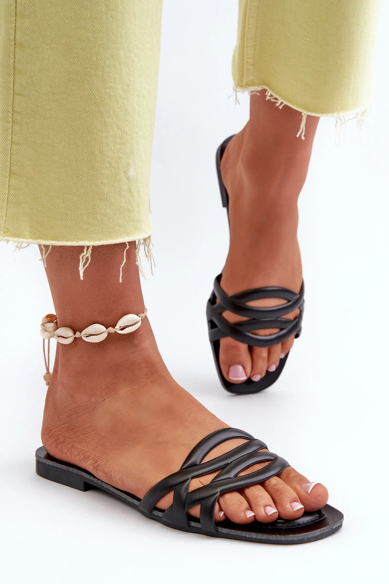Dámské sandály z eko kůže na ploché podrážce černé Moldela