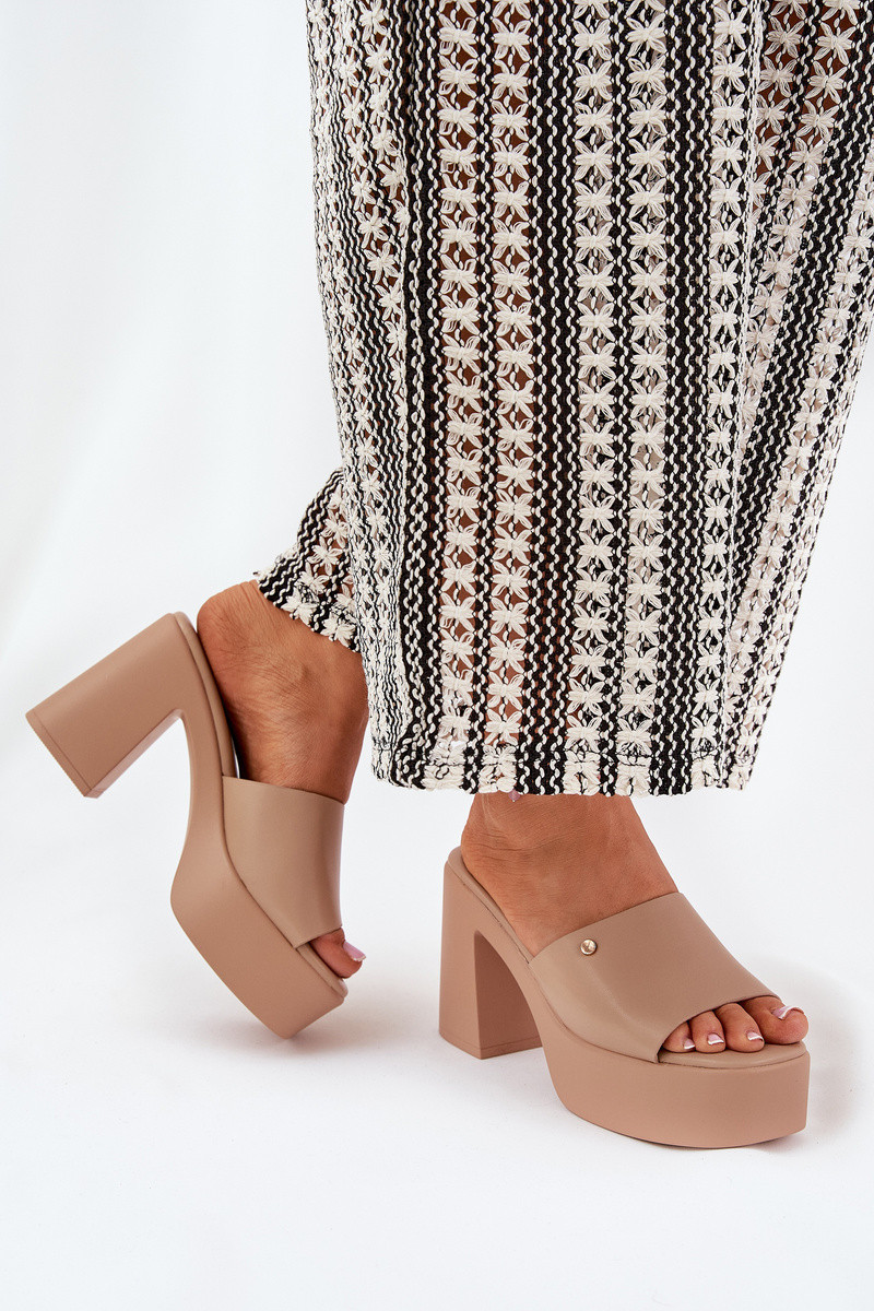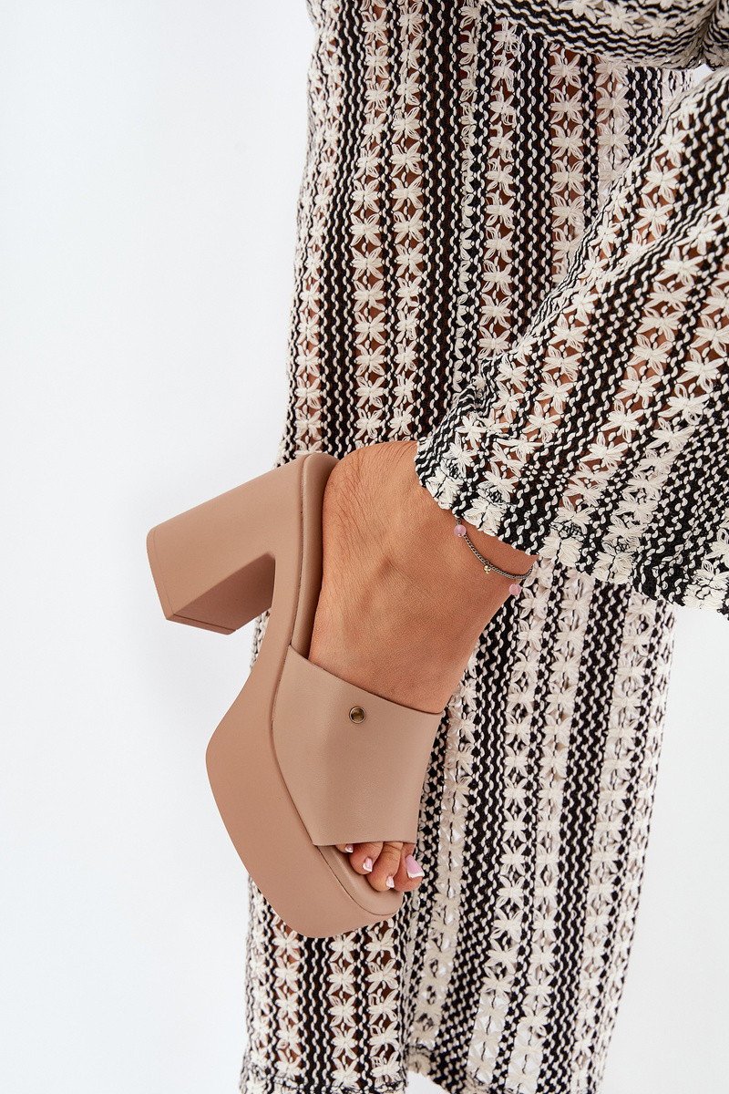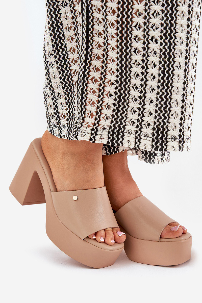 Lehké dámské pantofle vyrobené z eko kůže. Uloženy na sloupku a platformě. Měkká stélka zajišťuje pohodlí po celý den, zatímco pevná konstrukce platformy a podpatku garantuje stabilitu. Skvělé na teplé dny, tyto pantofle budou ideální volbou pro každodenní stylizace, spojující módní vzhled s funkčností. Při výběru velikosti se řiďte tabulkou velikostí.