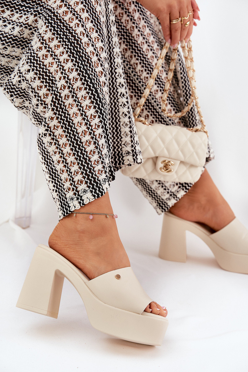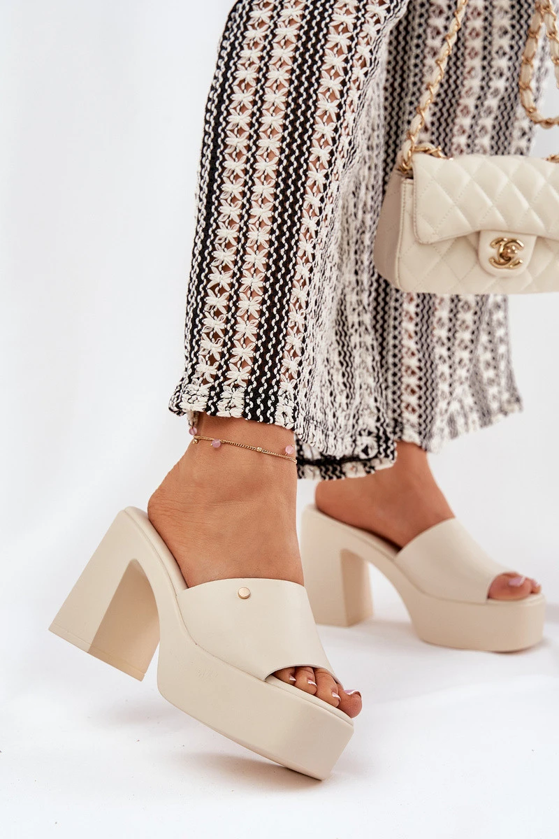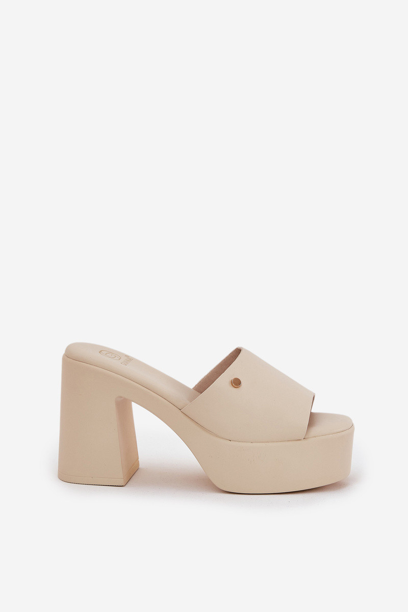 Lehké dámské pantofle vyrobené z eko kůže. Uloženy na sloupku a platformě. Měkká stélka zajišťuje pohodlí po celý den, zatímco pevná konstrukce platformy a podpatku garantuje stabilitu. Skvělé na teplé dny, tyto pantofle budou ideální volbou pro každodenní stylizace, spojující módní vzhled s funkčností. Při výběru velikosti se řiďte tabulkou velikostí.