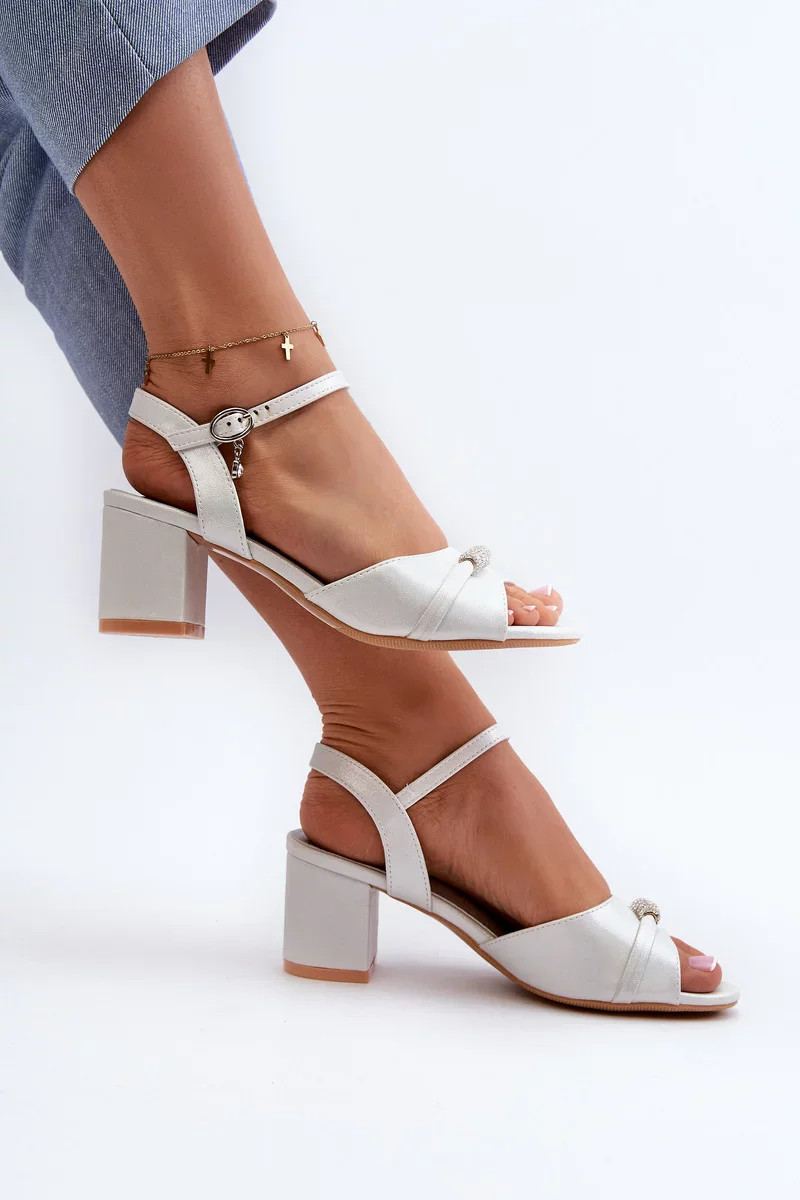 Dámské sandály z eko kůže na vysokém podpatku se stříbrnými ozdobami Narhi
