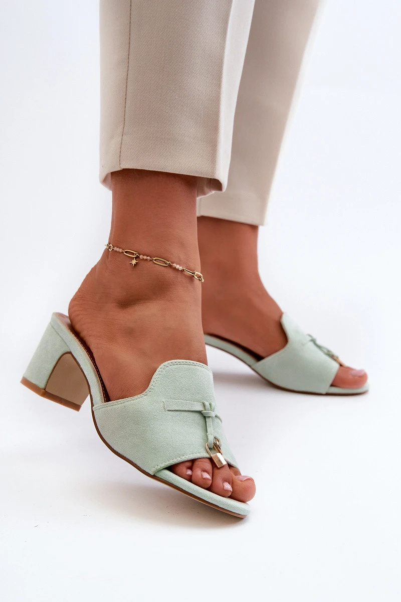 Dámské sandály Z Eko Semišu Na Podpatku Mátové Jemenna
