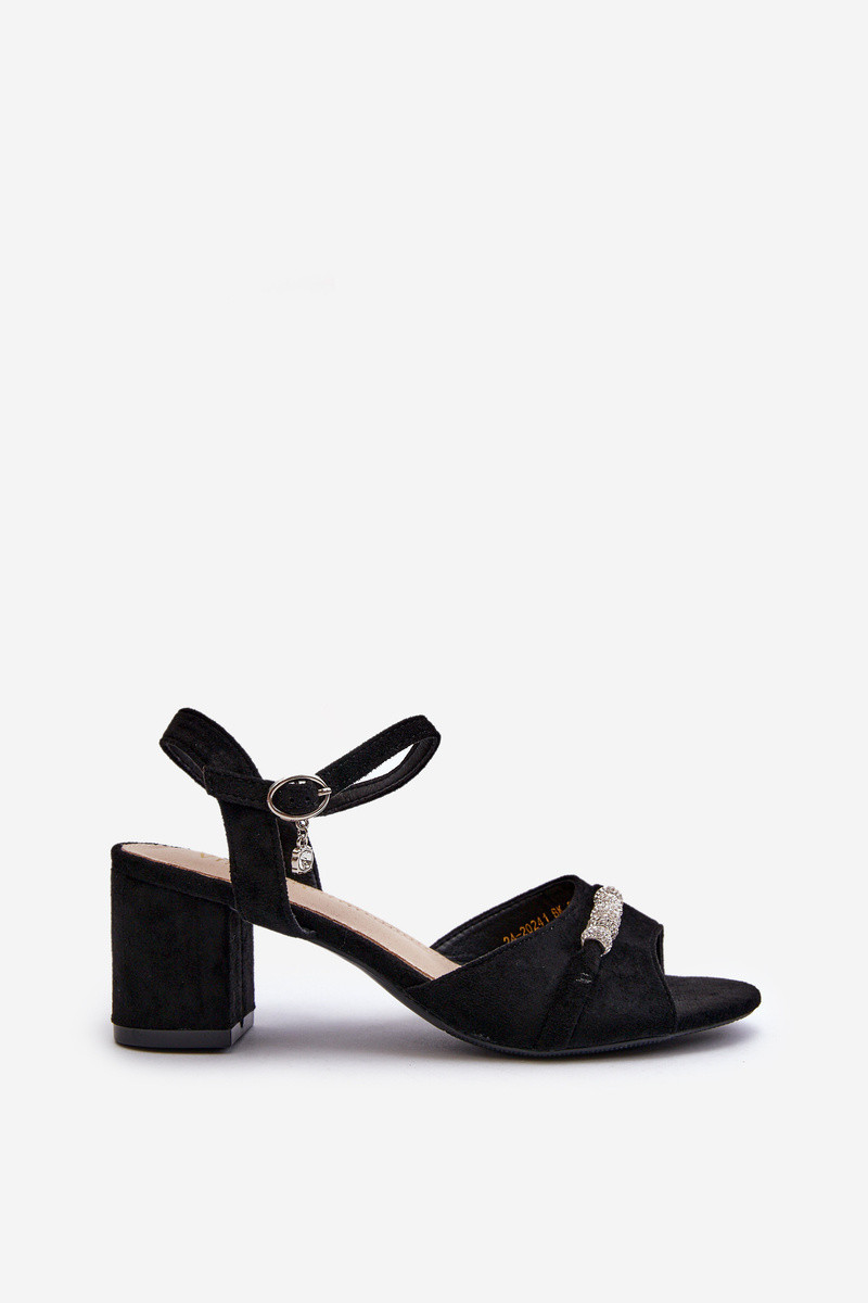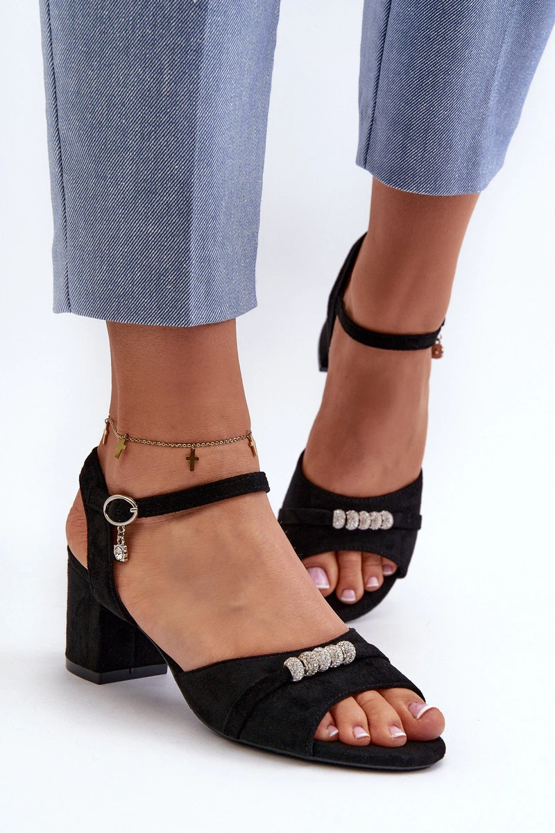 Dámské sandály z ekologického semiše na podpatku s ozdobami černé Narhi