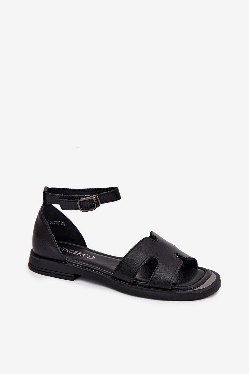 Dámské sandály z pravé kůže na ploché podrážce Vinceza 62305 Černé