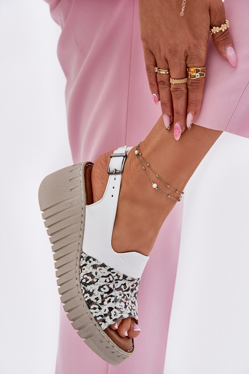 Dámské Sandály Z Přírodní Kůže Na Klínu Bílé model 21697709 - Artiker