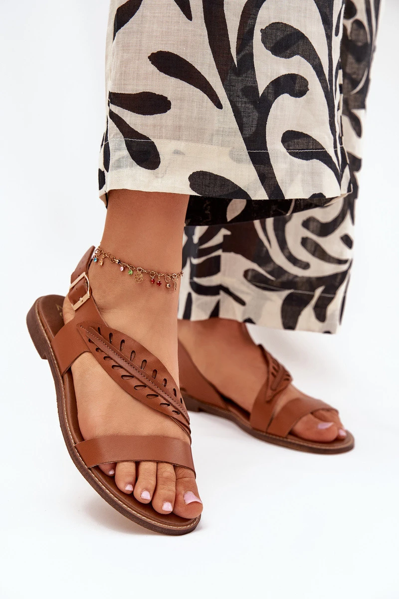 Dámské sandály z přírodní kůže na plochém podpatku Zazoo model 21704079 Camel - Boto