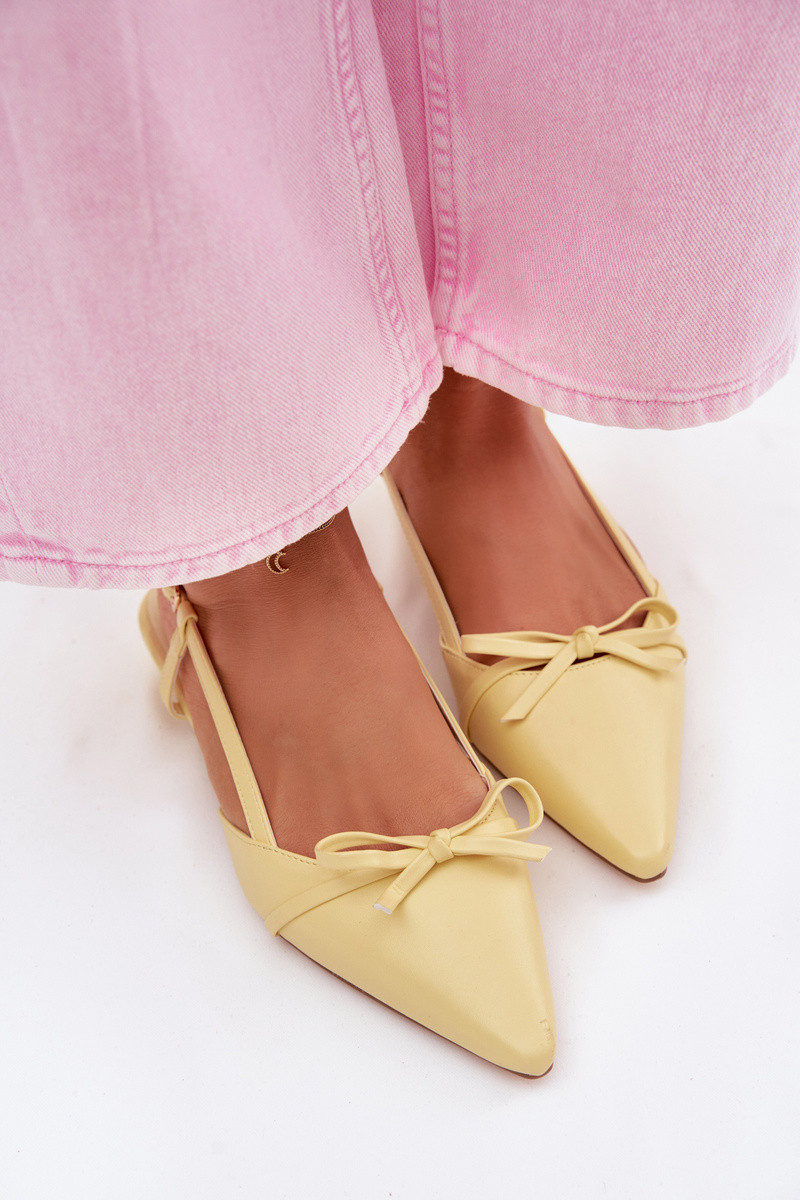 Elegantní dámské sandály vyrobené z imitace kůže jsou stylovým tipem na teplé dny. Skvěle spojují ženský design s pohodlím, takže jsou vhodné jak na každodenní nošení, tak na zvláštní příležitosti. Model má špičaté nosy, které dodávají celku elegantní vzhled a opticky zeštíhlují nohu. Jemné zavázání ve tvaru mašle přidává šarm a podtrhuje jejich jemný, ženský styl. Nízký podpatek zajišťuje komfort a stabilitu při chůzi, což je činí ideální volbou na delší nošení. Při výběru velikosti se řiďte tabulkou velikostí.