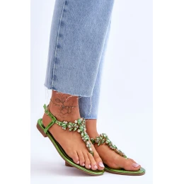 Dámské sandály žabky s kamínky Zelená Lenisa