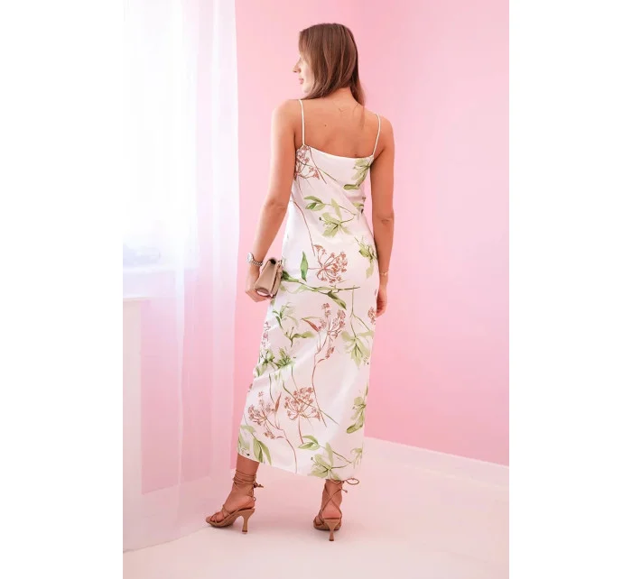 299-12 CHIARA elegantní maxi dlouhé saténové šaty bez ramínek - ZELENÉ