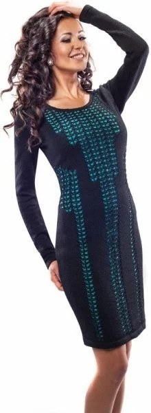 Šaty Enny 18025 klasický střih šaty s akrylem, který je ideální pro chladné dny a večery geometrický vzor a kontrastní spodní lem dlouhý rukáv vzadu hladké Délka cca. 95cm. Složení: 65% akryl, 28% polyester, 7% polyamid; Podšívka: 95% polyester, 5% elastan.