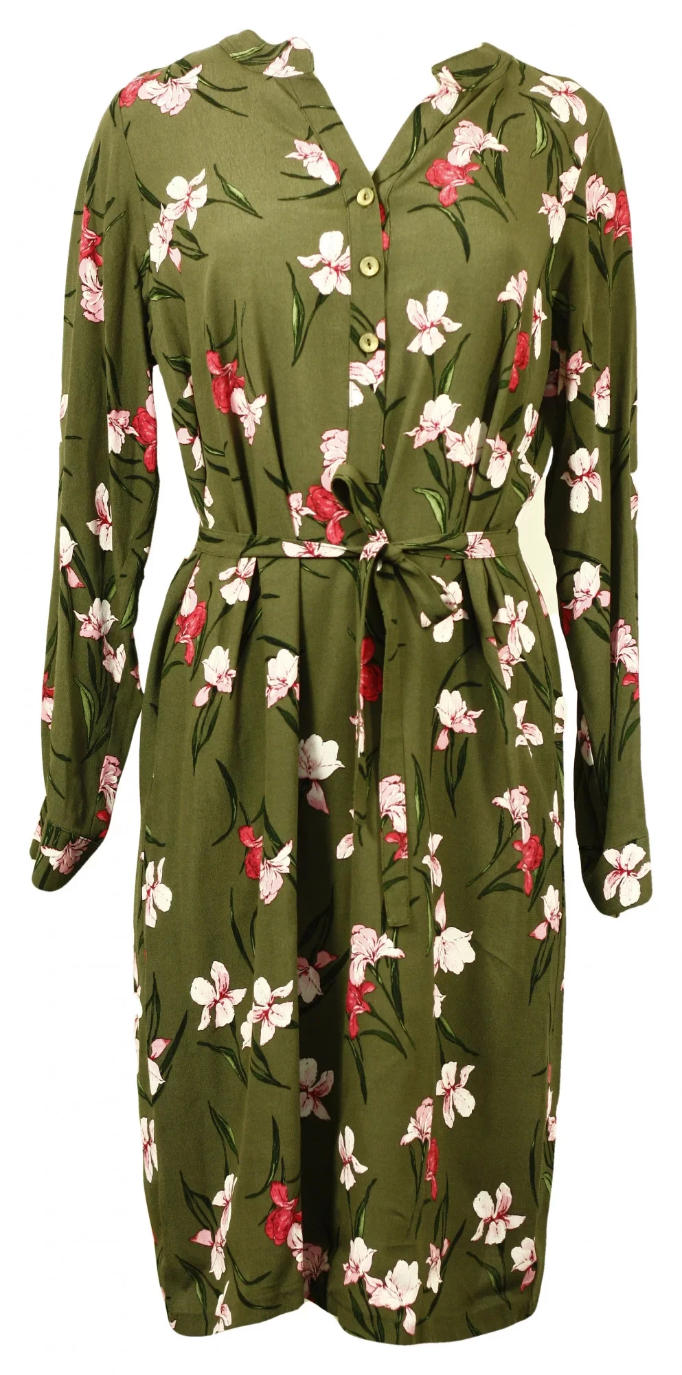 Produkt Dámské šaty 20473 - Deni prodáváme v těchto velikostech: 46a barvách zelená+květy1210003338874