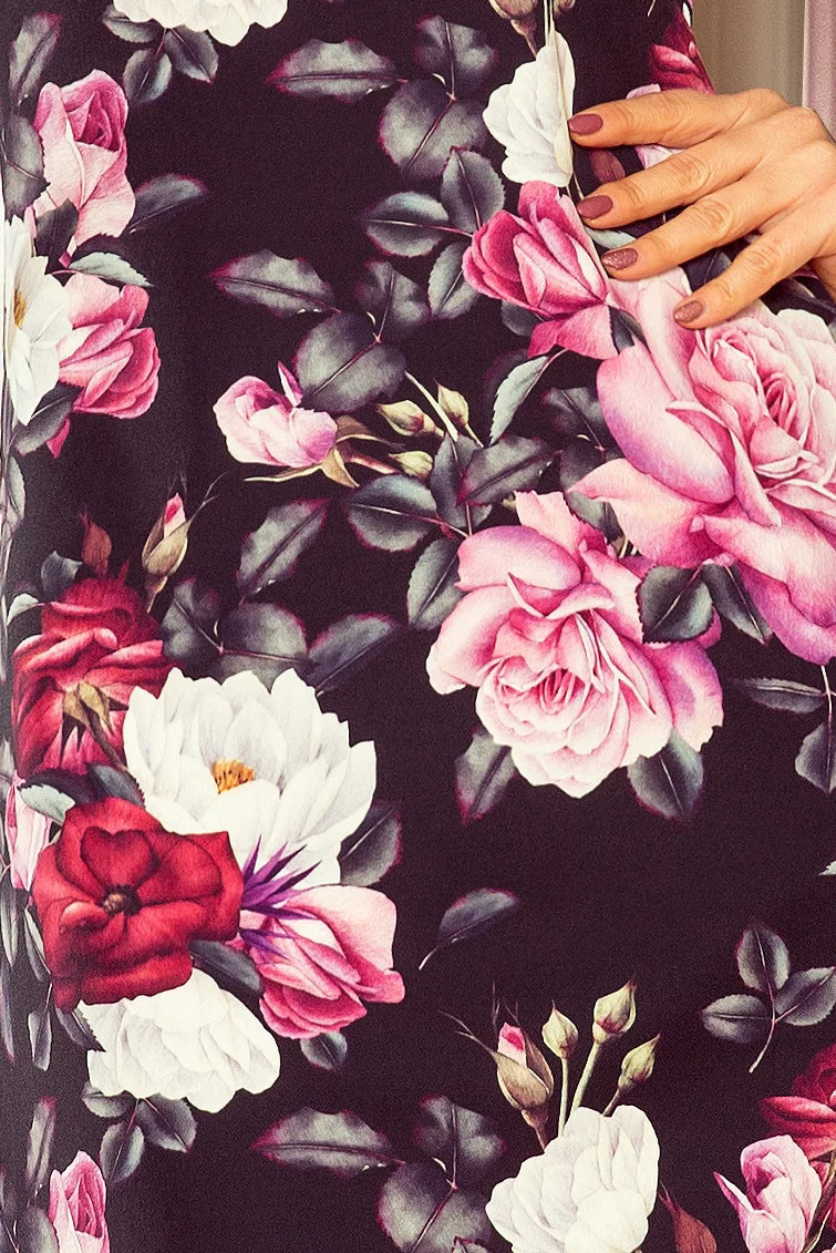 Produkt Dámské šaty model 20480137 - numoco prodáváme v těchto velikostech: La barvách černá s květy1210004029498