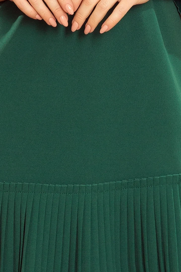 Dámské šaty 228-2 NUMOCO - zelená barva - jemné záhyby na zakončení rukávů a sukně - kulatý výstřih - 7/8 rukávy - pohodlný střih