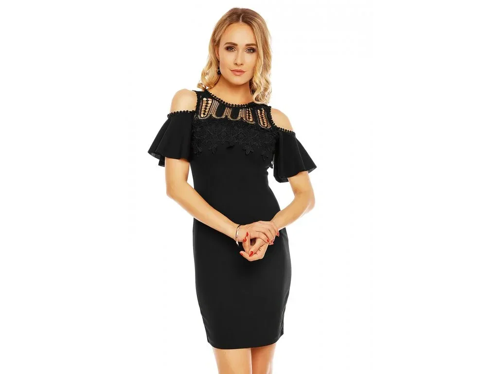 Dámské šaty značky Beaty fashion v černé barvě. Šaty jsou krajkové pouzdrového střihu. Jsou vyrobeny z příjemného a pružného materiálu.