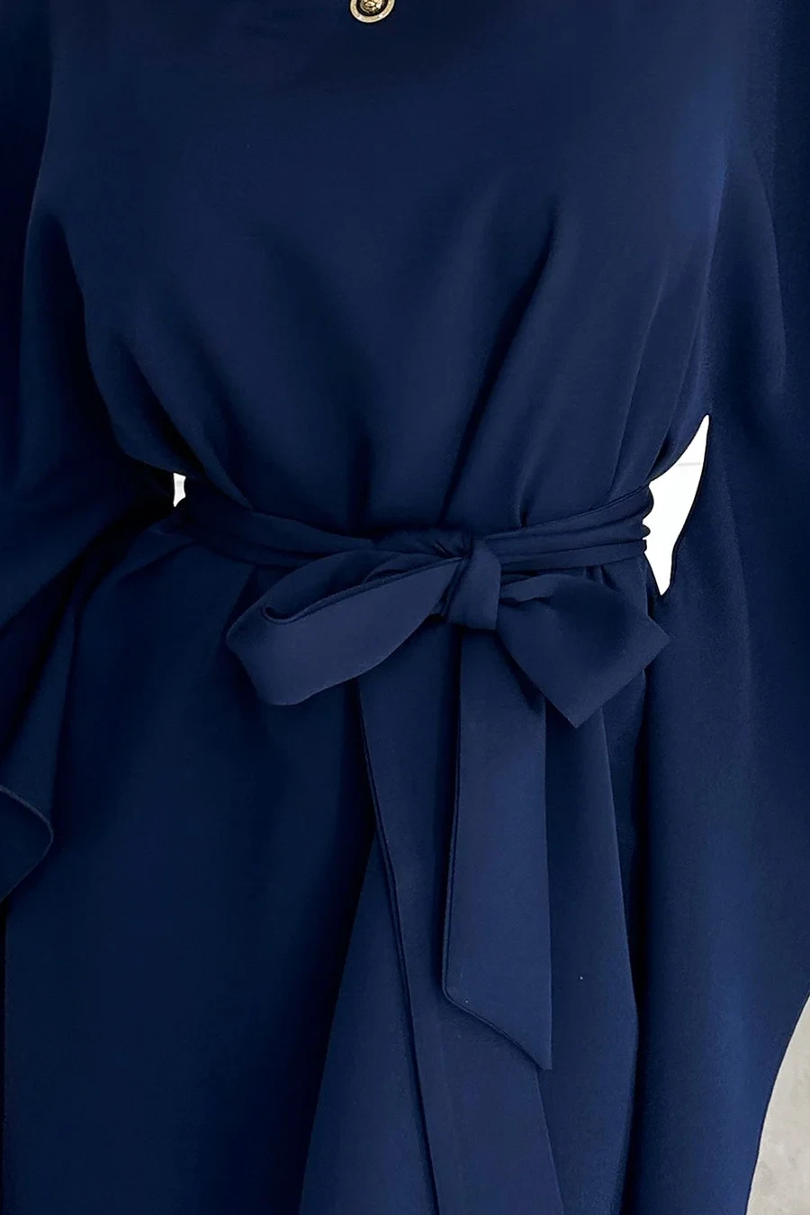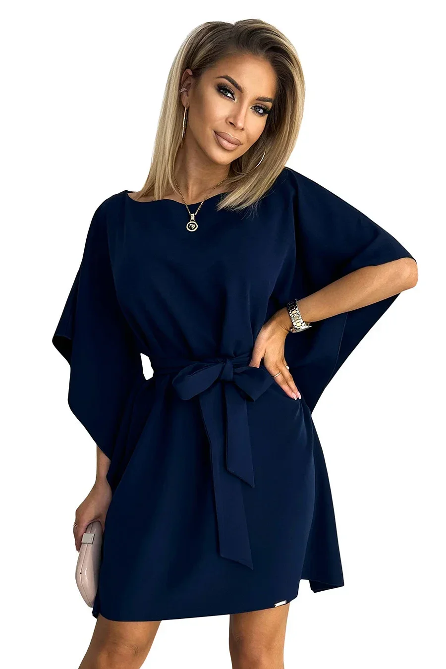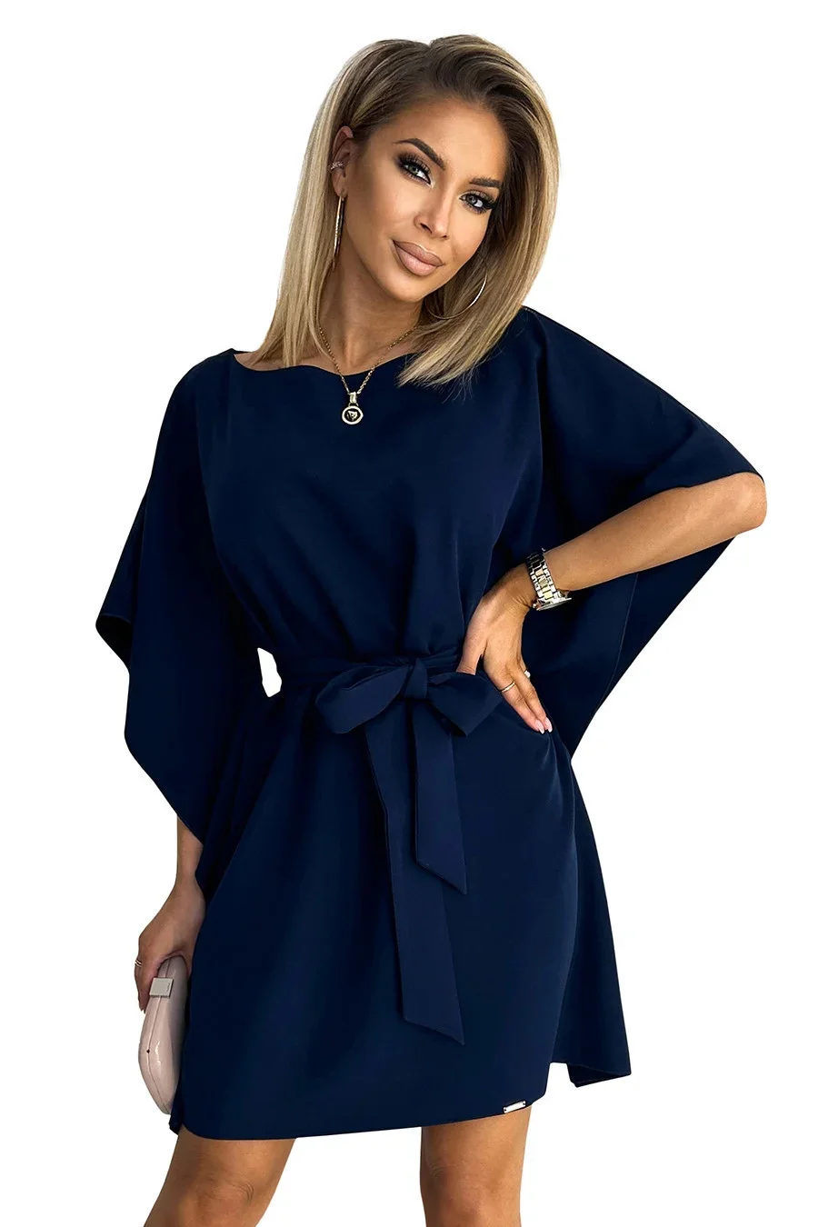 Dámské šaty 287-24 SOFIA Numoco - volnějšího střihu "motýl" - tříčtvrteční rukávy - v pase na zavazování - délka ke kolenům