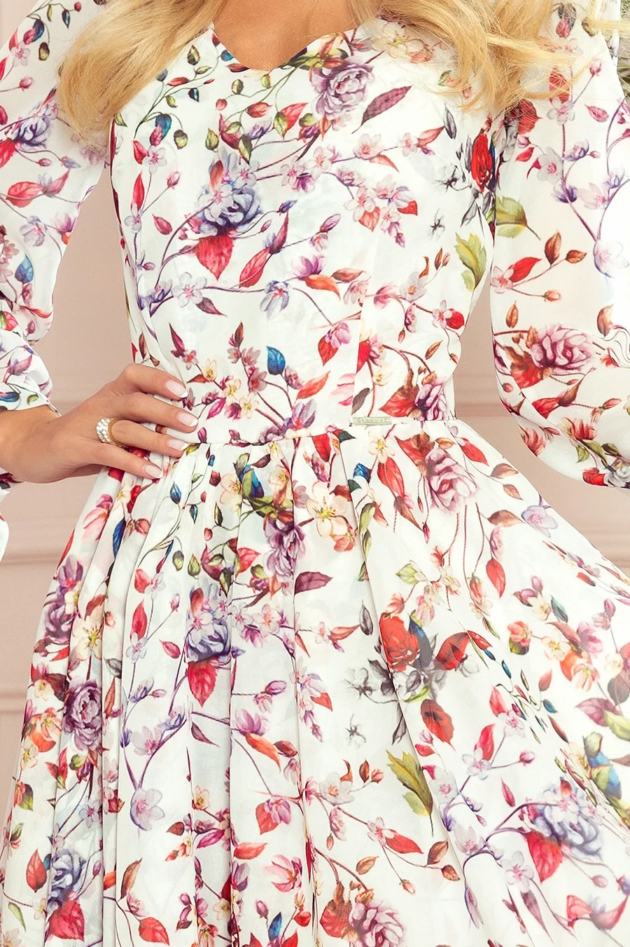 Elegantní šaty 305-1 Numoco - vyrobené z příjemného materiálu - krásný vzdušný letní střih - řasená sukně nad kolena - dlouhé rukávy