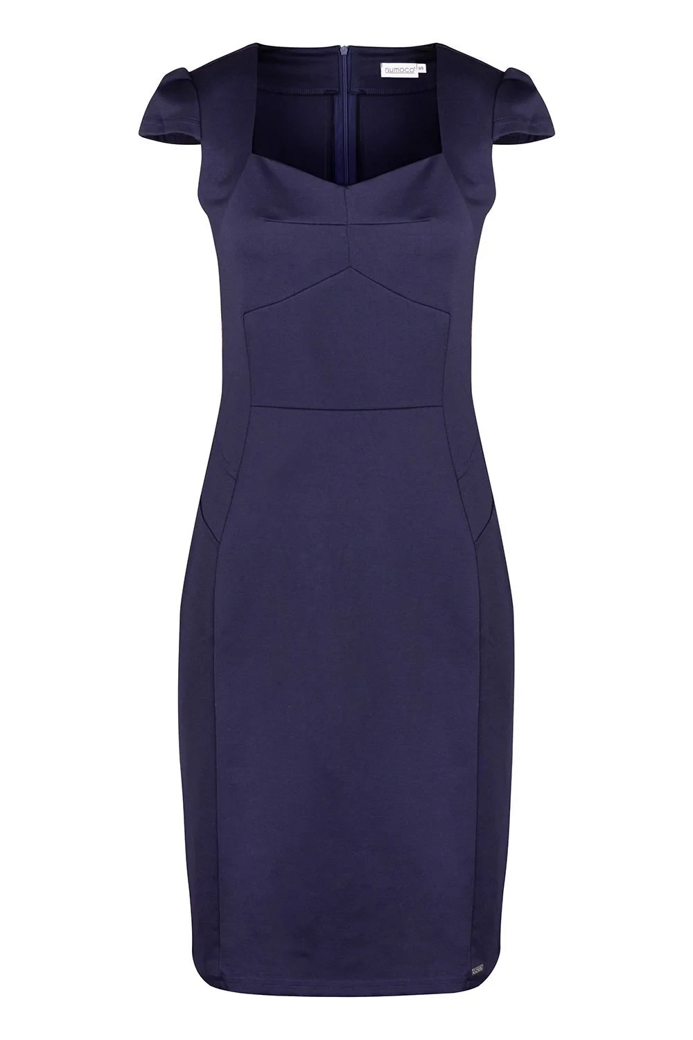 Dámské šaty 318-5 NUMOCO - tmavě modrá barva - krásně řešený dekolt - krátké rukávy - délka sukně ke kolenům - střih zvýrazňující ženskou postavu