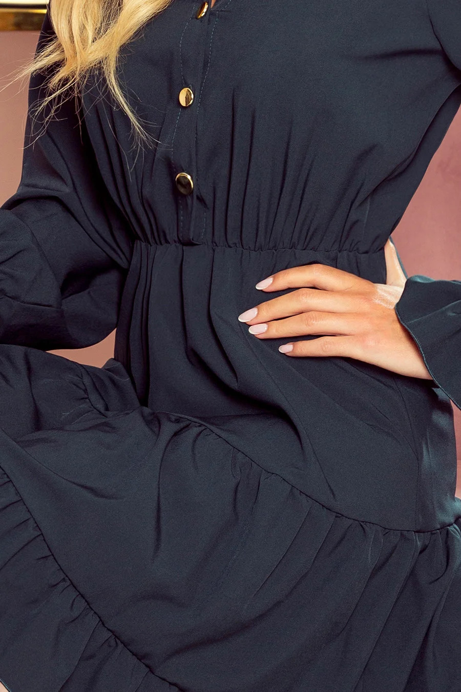 Elegantní šaty 332-1 Numoco - opravdu nádherný kousek s mnoha zajímavými detaily - zapínání na knoflíčky - vypasované pohodlnou gumou - zdobené volány na rukávech a v dolní části sukně