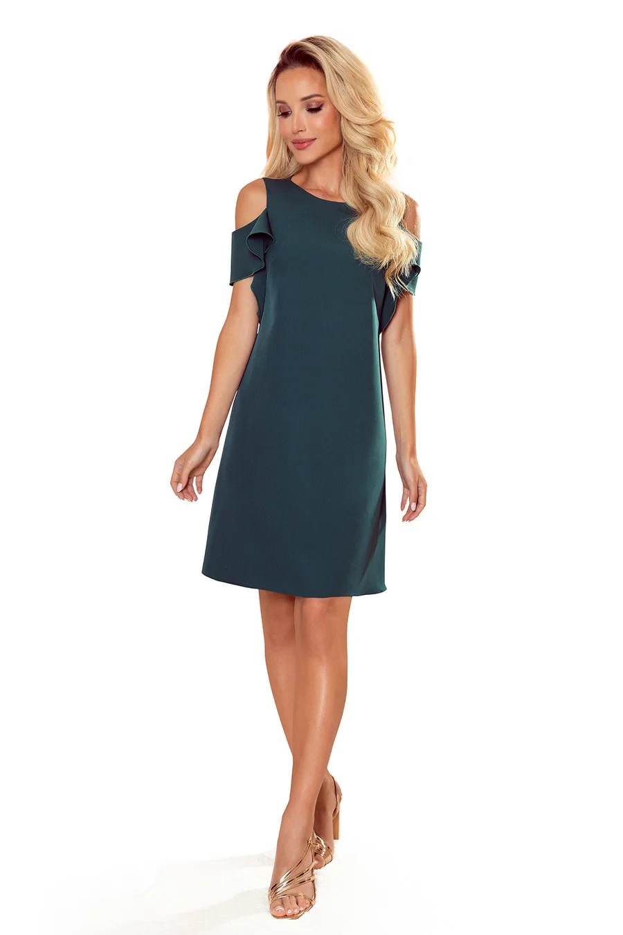 Dámské šaty 359-2 NUMOCO - zelená barva - z materiálu příjemného na dotek - elegantní střih s volánky na rukávech - široká ramínka